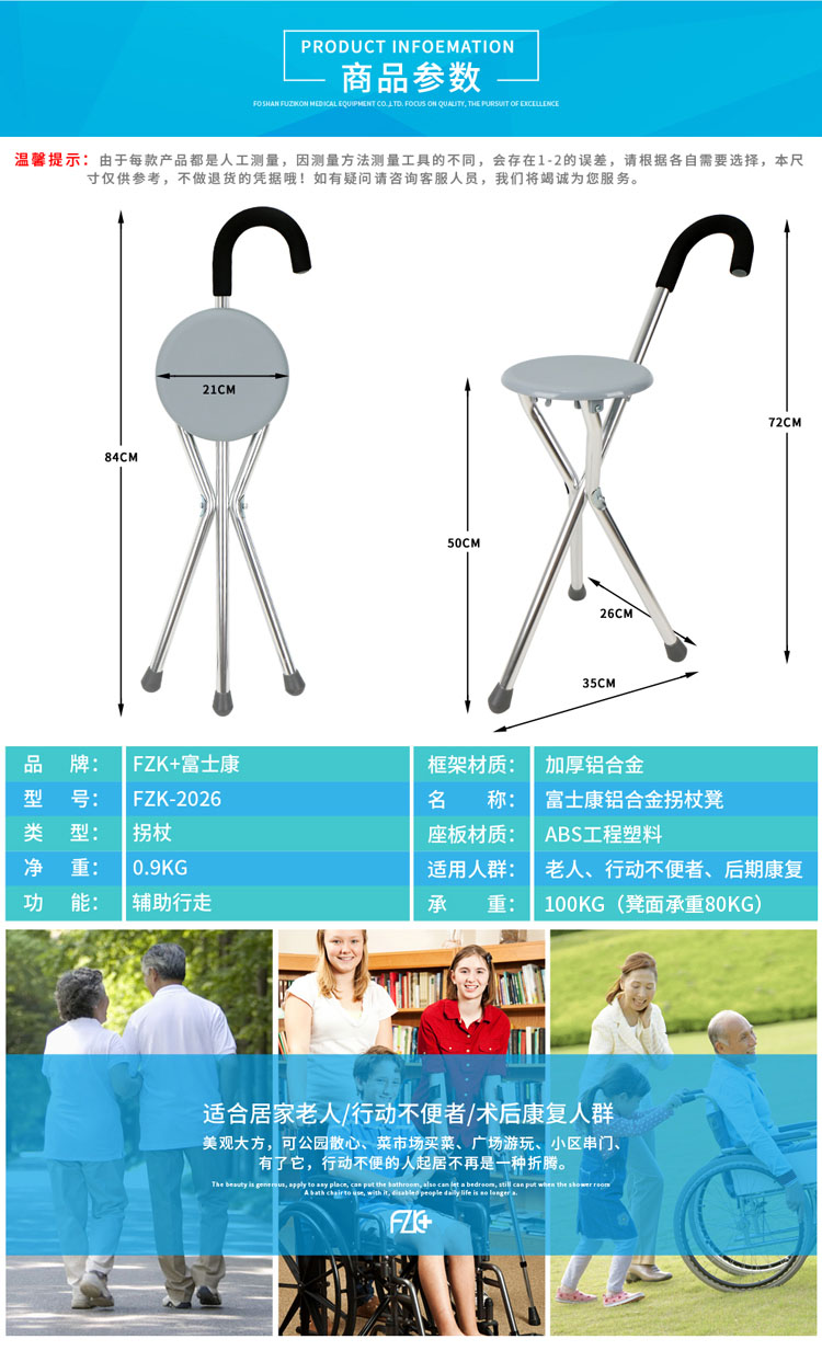 FZK-2026 鋁合金帶(dài)椅拐(guǎi)杖