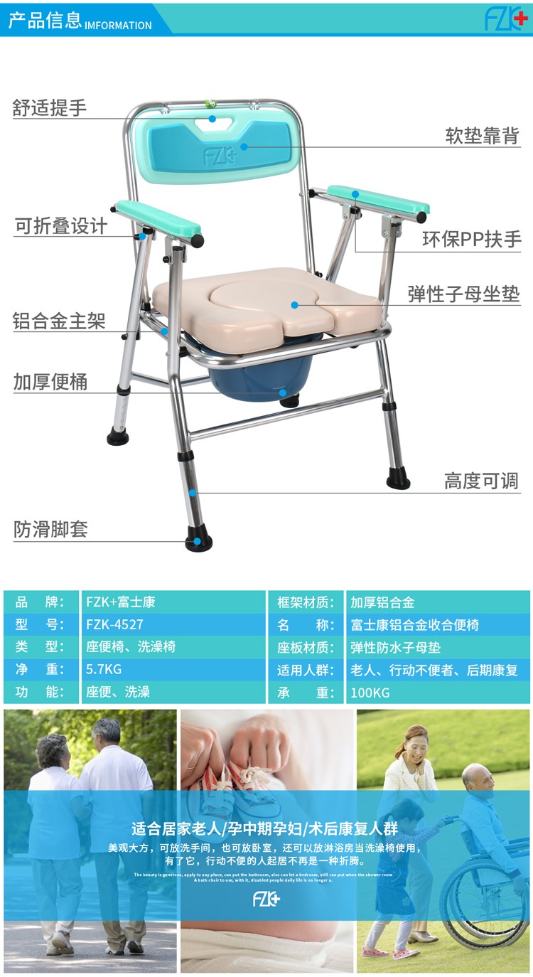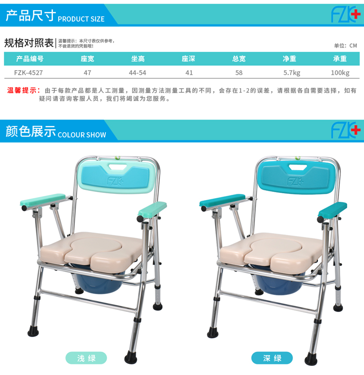FZK-4527 ALUMINUM FOLDING COMMODE CHAIR